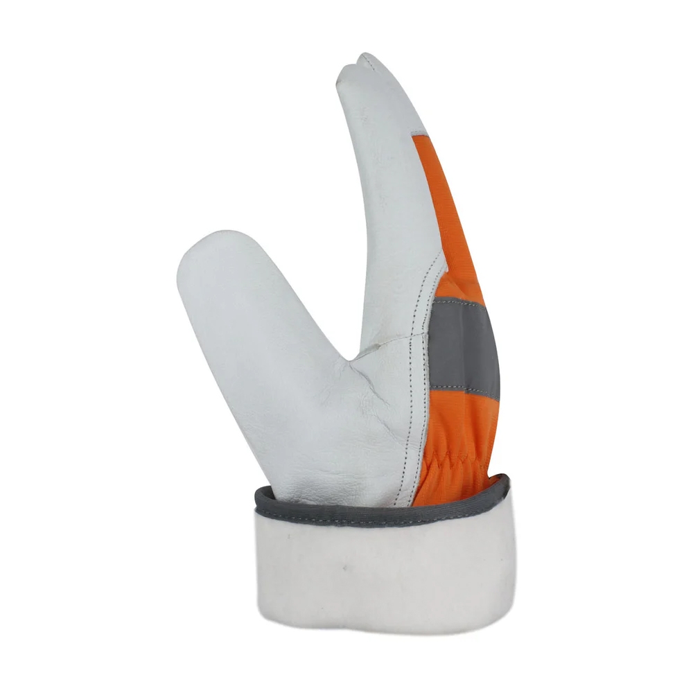 Front ( M/O Goatskin) & Back ( Cuff Cordura Fabric, Reflective Fabric On Knuckle Inside Half Fleece Lining And Reflective Polyester Border ) |