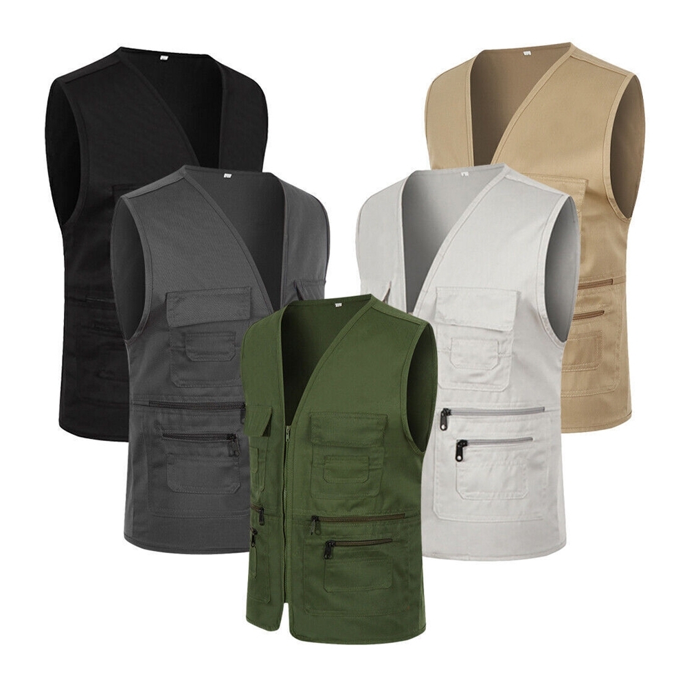 Mans Casual Cargo Vest Multi Pocket Waistcoat Utility Fishing Hiking Gilet Coats
