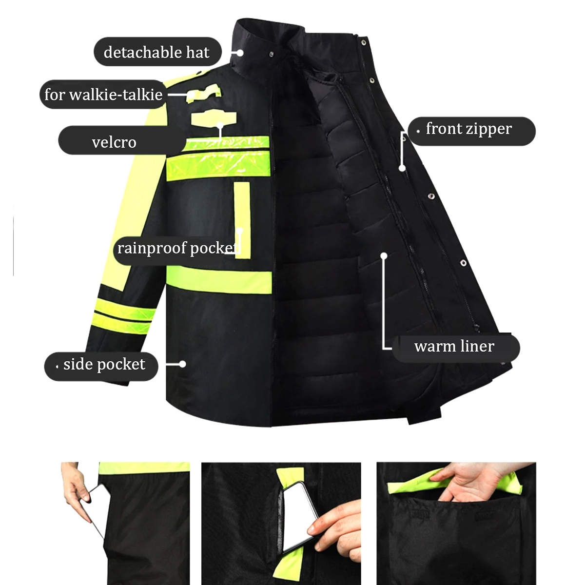 • it is best that we can choose workwear because it is not good the position of workers in the dark weather,which can easily cause unnecessary danger.