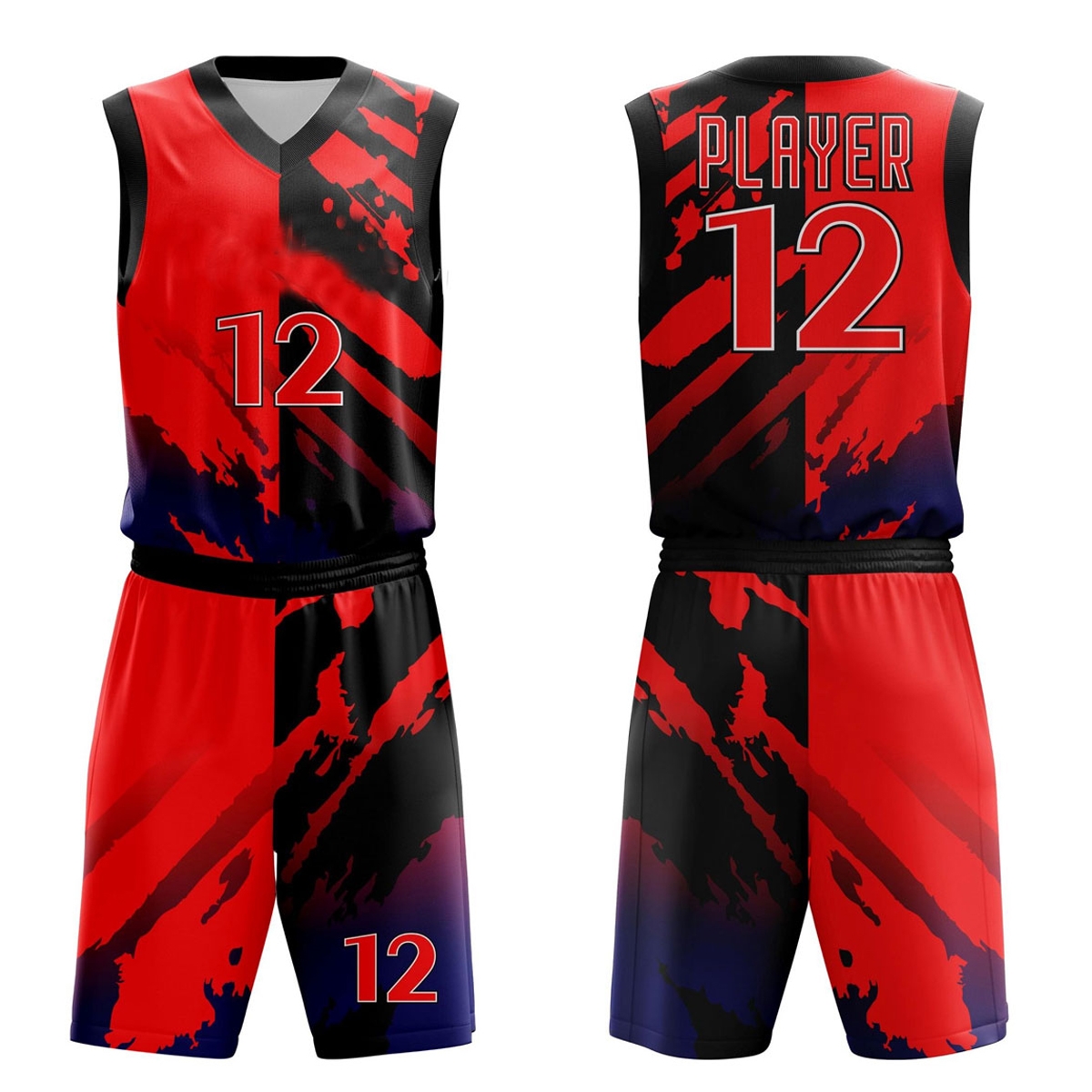 • Sublimated basketball uniforms with preset patterns printed on full dye sublimation technology